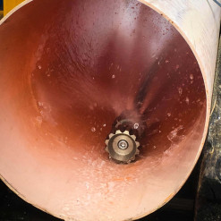 Light vibrating nozzle with a crowned head. Off-axis rotor makes the nozzle vibrate, so the limestone or concrete debris get broken. Head is designed to avoid the nozzle to get stuck in the pipe junctions.